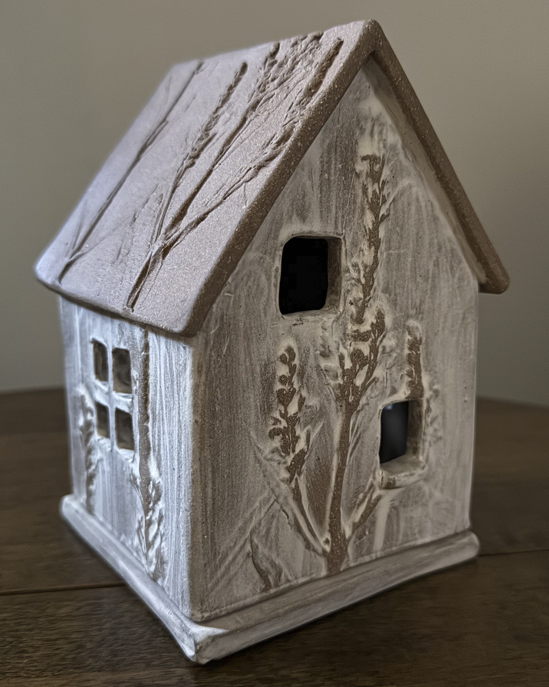 My current work draws directly from the garden. Leaves and flowers are pressed into slabs or impressed into thrown forms, creating botanical imprints that serve as quiet records of the seasons I’ve lived and tended. Each mark tells a story — a petal from a hydrangea, the vein of a hosta leaf, a small reminder that beauty and imperfection coexist.